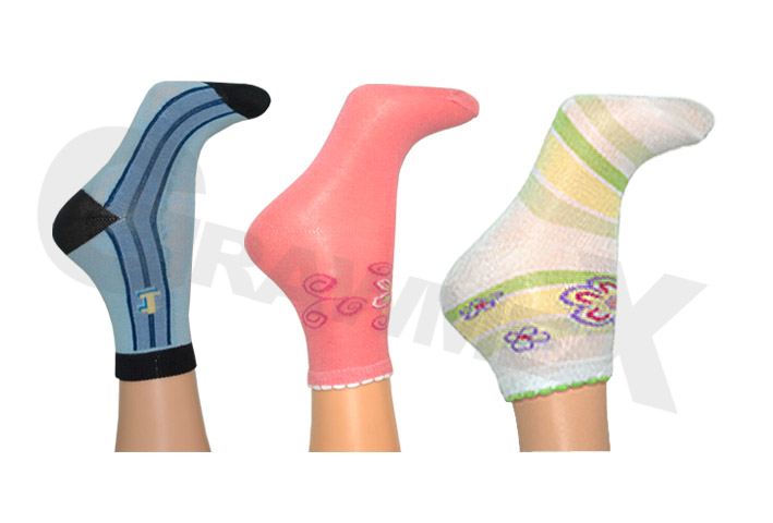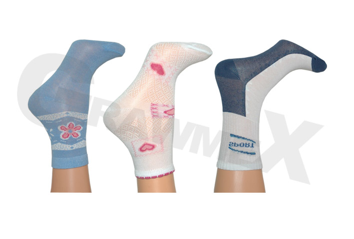 Skarpetki nasze produkowane są z wysokiej jakości przędzy bawełnianej. W zależności od wzoru, skarpetki zawierają domieszki włókien sztucznych (Prolen, Elastan). Zastosowane wysokiej jakości surowce gwarantują naszym wyrobom trwałość oraz wysokie walory użytkowe. Skarpetki mogą być produkowane w szerokiej gamiekolorów (zgodnie z próbnikiem producenta przędzy)